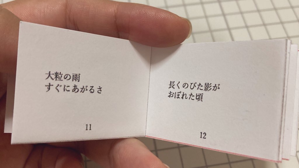 9月からのWEBイベントでは折本のデータを頒布できればいいな~と思っているのですが、ようやくサンプルを作れました。以前ただのレポート用紙で作ったときは散々だったので、今回はちゃんとデータも作って、厚さ0.12のマット紙に印刷してみたら、しっかりしてていい感じだったので一安心。気になるところは糊づけすれば気にならないし、サイズ感は元々気に入っていてかわいいし、万々歳です。あとは中身…。今回の中身はざつ日記 で見られます。