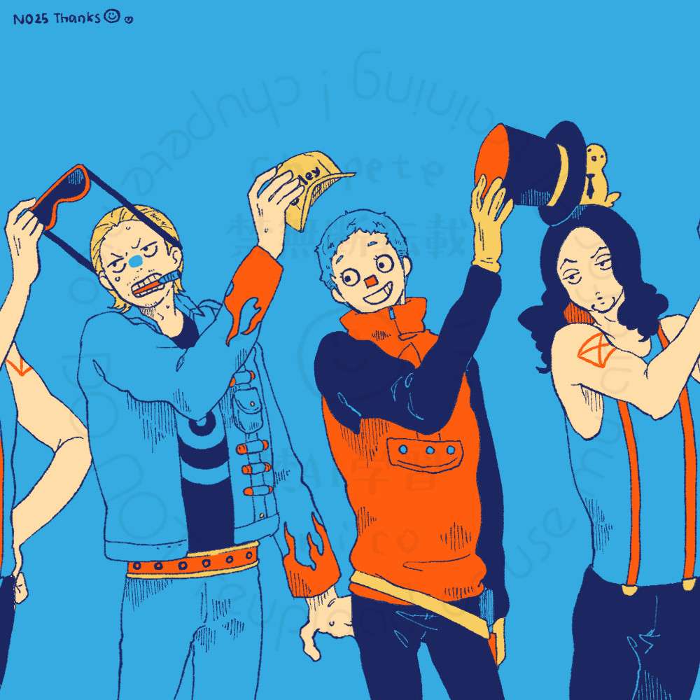 あとあとさ、色もめちゃかわいいはね〜おしゃれすぎ!何が起きてる!?このバランス〜〜〜全然詳しくないから素敵ってことしかわからんけどめっちゃ素敵…カクさんの髪青いのよ〜〜!?なのに全然違和感ないってかほんとお洒落!ルッチのタトゥーはオレンジ?朱色?だし!んも〜〜〜シャレヤバ!!!!