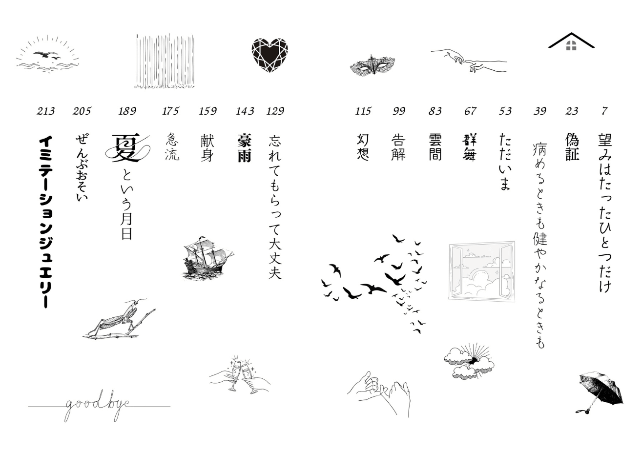 #夏という月日 の本文と表紙がひとまず出来たのでサンプル刷りたくて入稿してみました。結局目次と各話扉はとりあえずやりたいことやることにしたのでこんな感じです。縦書きPDFで読んでみるとまた…こう…いいね。自画自賛。こうして少しずつ書いたものを自分用に本にしてったら楽しいだろうなあと思うので#KISSMEMORE も三回目の書き直しがんばります。 #進捗 favorite いいね No.194 2023/08/06(Sun) 18:16 178 字