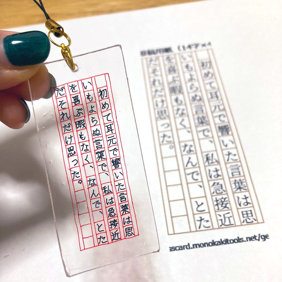 うどんちゃん がプラ板でかわいいものを作っていたので私もいそいそダイソーに出かけて行って、プラ板ゲットしてきました。如何せん、絵が描けないので文字書いたろか~って出来たのがこれです。シュール。プリンターで印刷できるプラ板も買ったので、届いたら同人誌の表紙でも印刷しようかなと思っています。あとは猫など。#夏という月日 ようやく全部納得いくまで書けました!よっしゃあ!!!連休中に製本データ作って入稿するぞ~~~~!!!!!